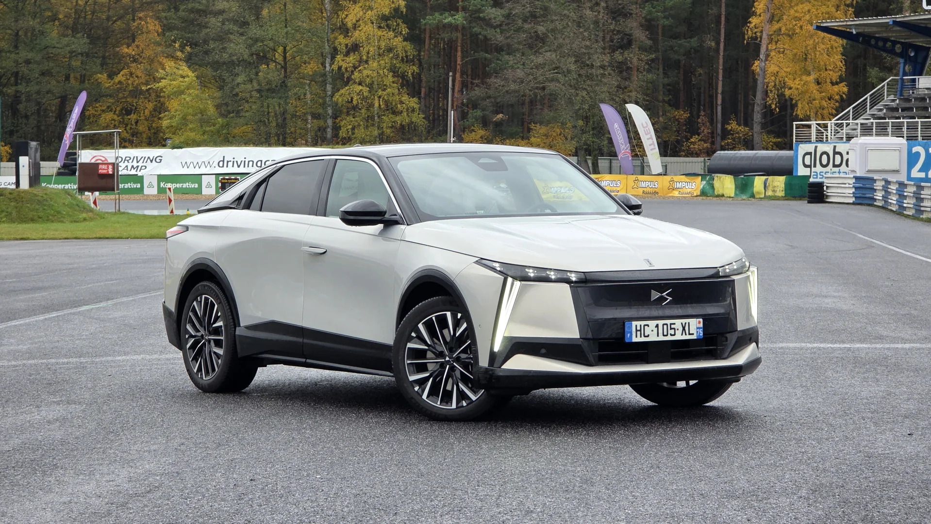 DS N°8 na okruhu ukázal, že ačkoliv není stavěný na sportování, dokáže v daných ohledech překvapit. Při losím testu zvládl úhybný manévr na mokré trati v rychlosti 63 km/h, což je na velký a těžký elektromobil s letními pneumatikami slušný výsledek. Na druhou stranu se projevilo, že podvozek je spíš houpavý a měkký, což sice odpovídá charakteru auta, ale na okruhu to nebylo úplně ideální. Řízení neposkytuje moc zpětné vazby a v naší verzi s pohonem předních kol byla trakce při výjezdu ze zatáček dost omezená.