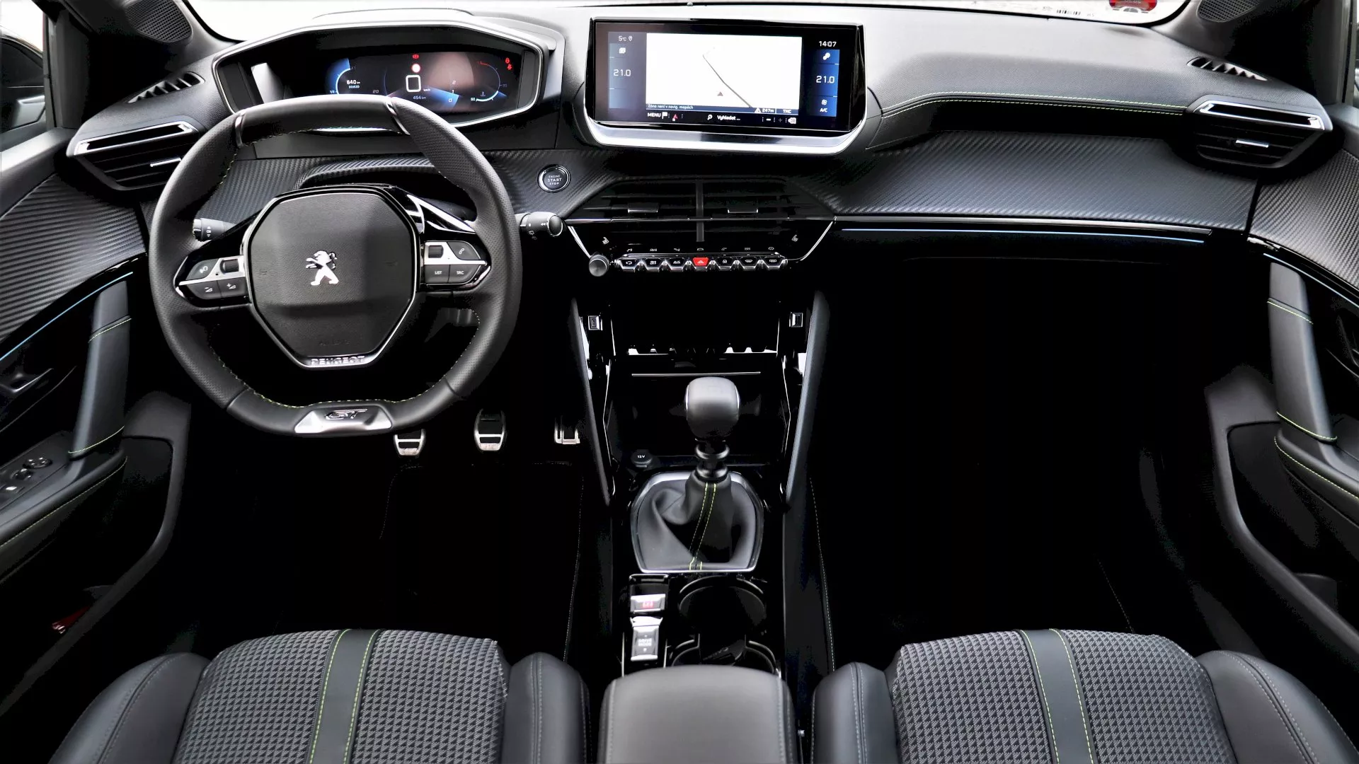 V kabině se rozdíly také nehledají těžko. Již na první pohled je vidět, že na palubě luxusnějšího Peugeotu 208 GT Line převažují kvalitnější materiály v podobě kůže a měkčených plastů. Najdeme zde i imitaci karbonu, která se však nachází i v provedení Active.