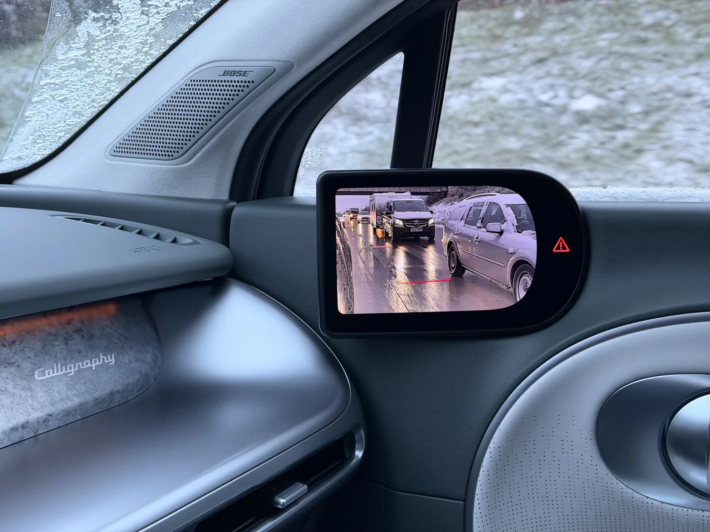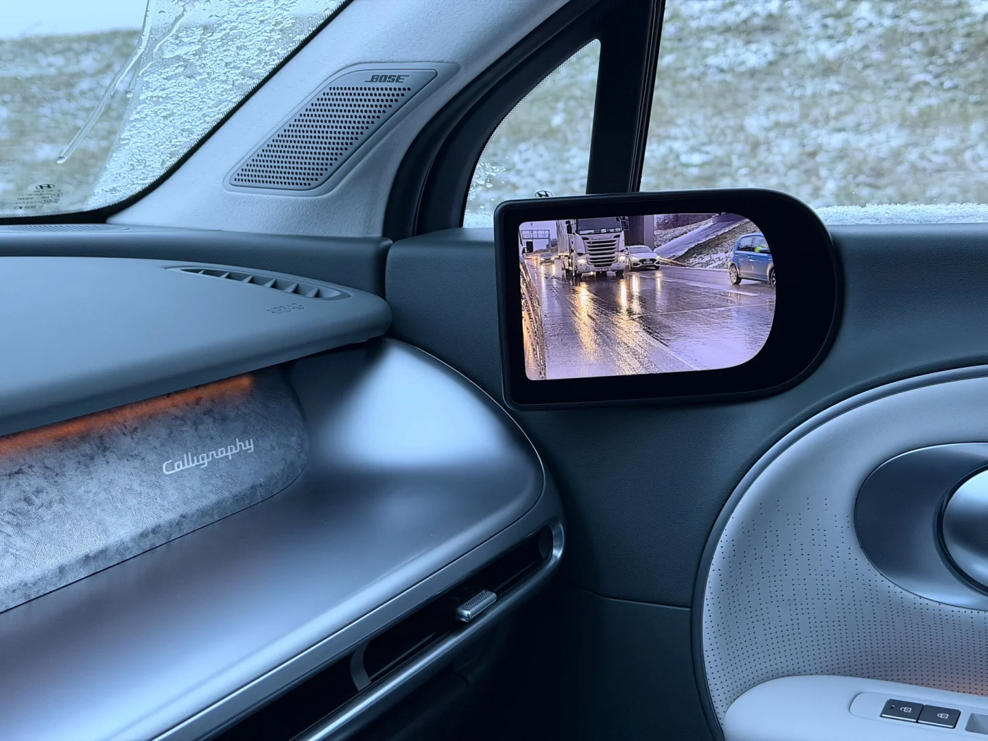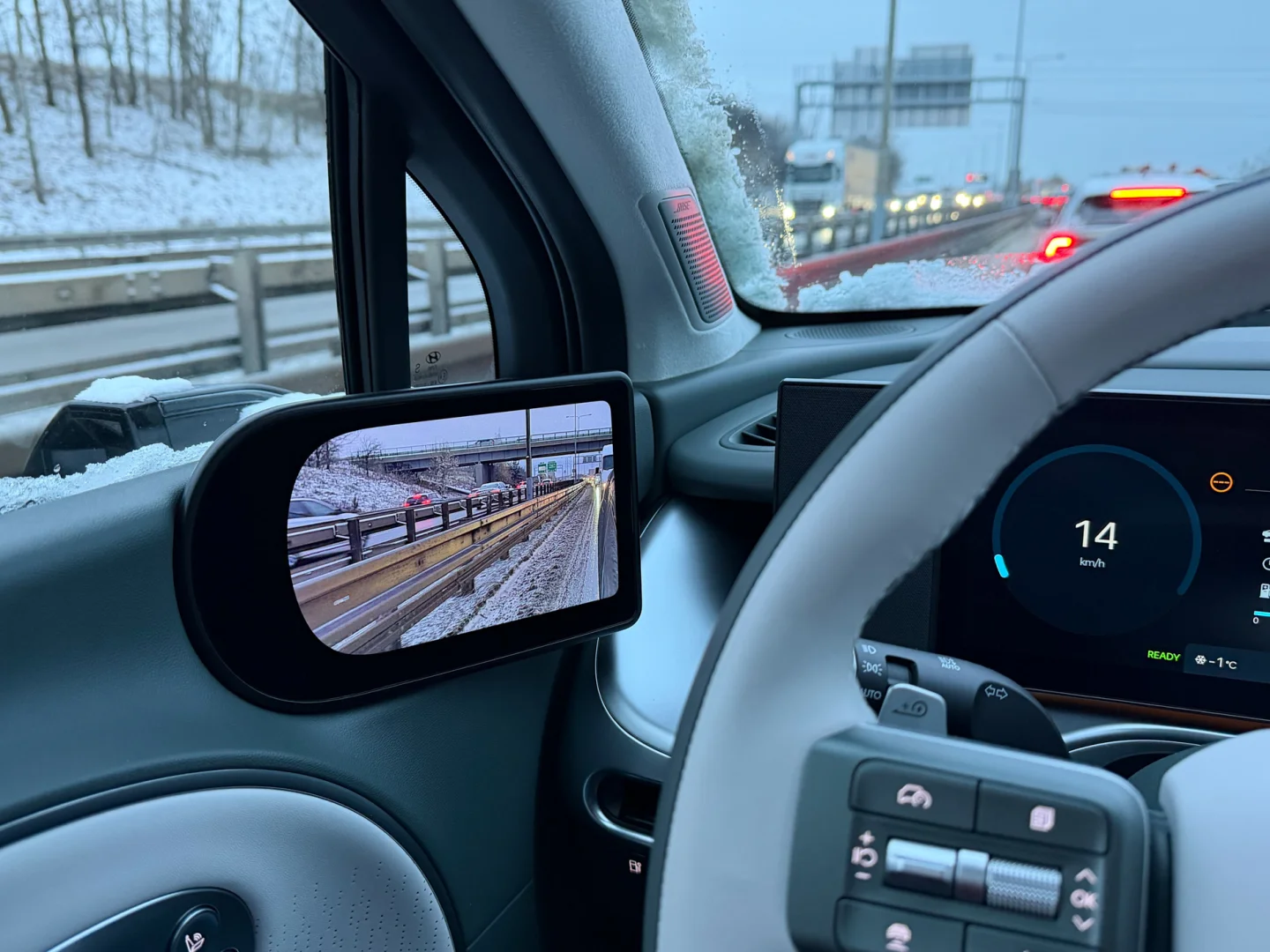V běžném provozu si pak nelze nevšimnout i dalších pozitiv. Virtuální zpětná zrcátka, ačkoli opačný jev často zmiňují jejich zarytí odpůrci bez reálných zkušeností, se příliš nešpiní a je v nich lépe vidět za tmy, hlavně v dešti. Provoz za sebou skutečně vidíte, obraz není jen změť oslňujících paprsků ze světlometů aut jedoucích za vámi. Stejně tak se mi nikdy nestalo, že se na čočky kamer dostaly kapky, přes něž by nebylo vidět.