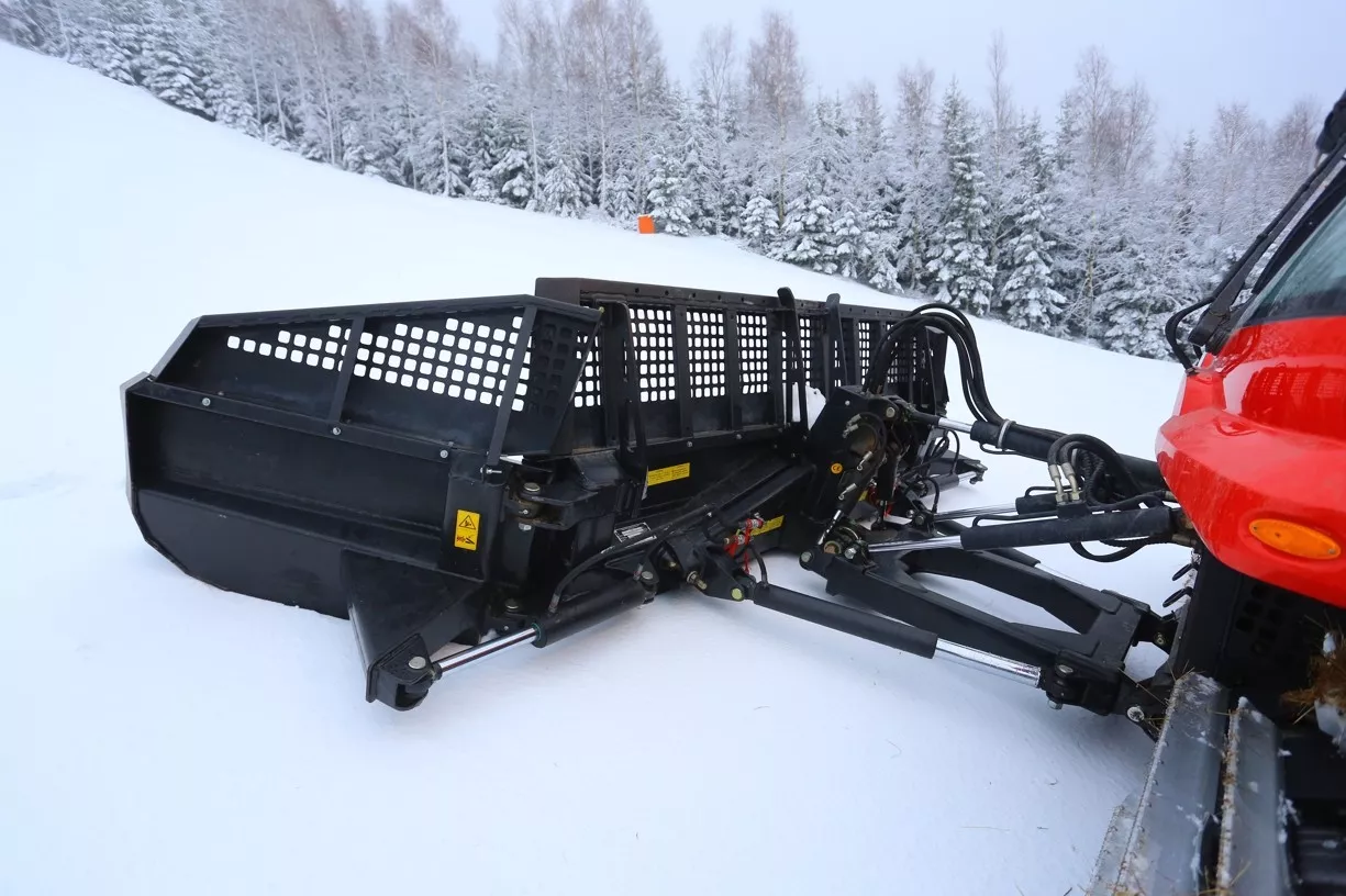 Pouštím se tedy střemhlav dolů, takže vhod přijdou i bezpečností pásy - jinak by také člověk mohl propadnout předním oknem. Naviják, který se otáčí stejnou rychlostí jako motor rolby však dodává pocit bezpečí. Vedle strmého stoupání či klesání se naviják užije i při úpravě a hrnutí těžkého mokrého sněhu.