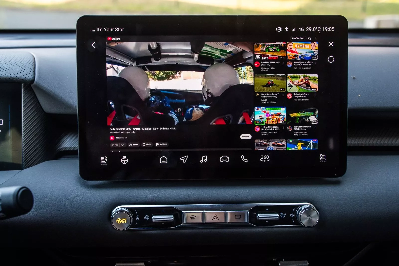 Vítaným prvkem je možnost ovládat teplotu klimatizace kolečkem, klimatizace je ale pouze jednozónová. Šikovnou funkcí jsou dvě tlačítka s hvězdičkou na volantu, kam si můžete nastavit své vlastní zkratky. My jsme si na jednu hvězdičku dali nastavení intenzity rekuperace a na druhou volbu jízdních režimů. Právě jízdní režimy jsou jednou z věcí, která zůstala zahrabána poměrně hluboko v menu. Ale tohle je řešení.