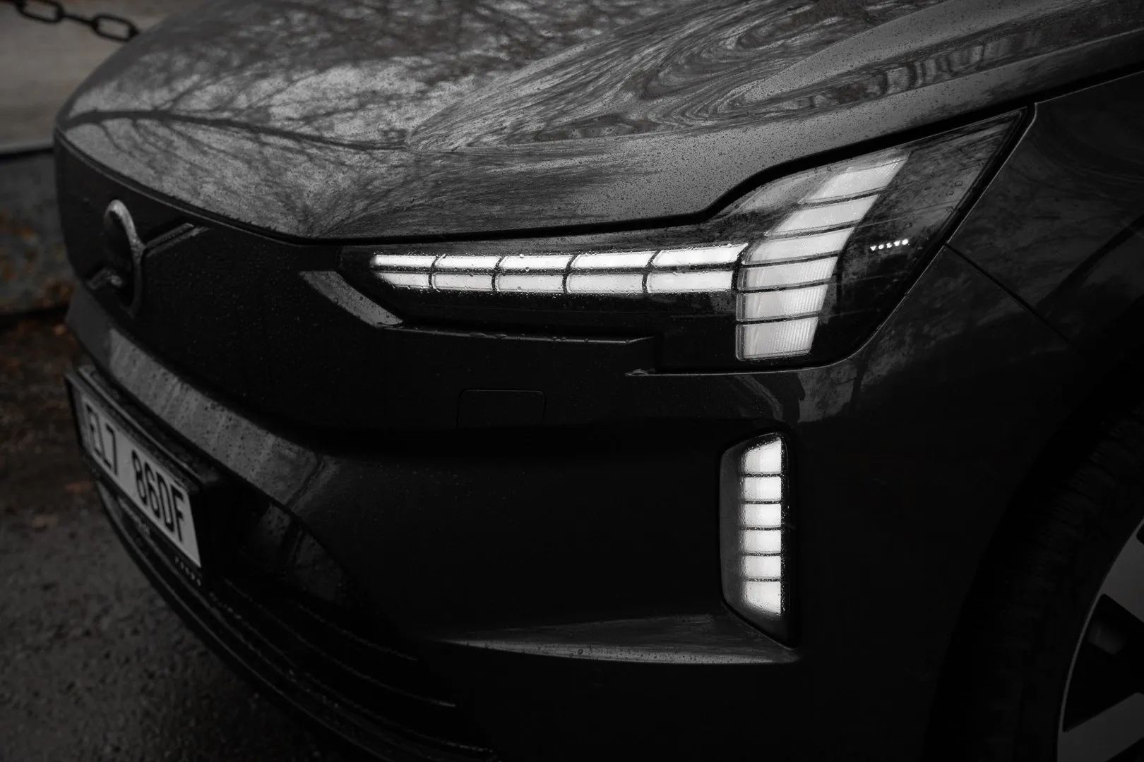 Typickým znakem pro každé Volvo jsou světlomety, které mají podobu Thorova kladiva. V tomto případě přibývá něco navíc. Nová světelná generace umí víc než jen svítit. Například když se k autu přiblížíte, přivítá vás světelná sekvence. V praxi to znamená, že se „kladivo“ v horní části rozevře a následně zase přivře, takže to vypadá, jako když na vás auto mrkne.
