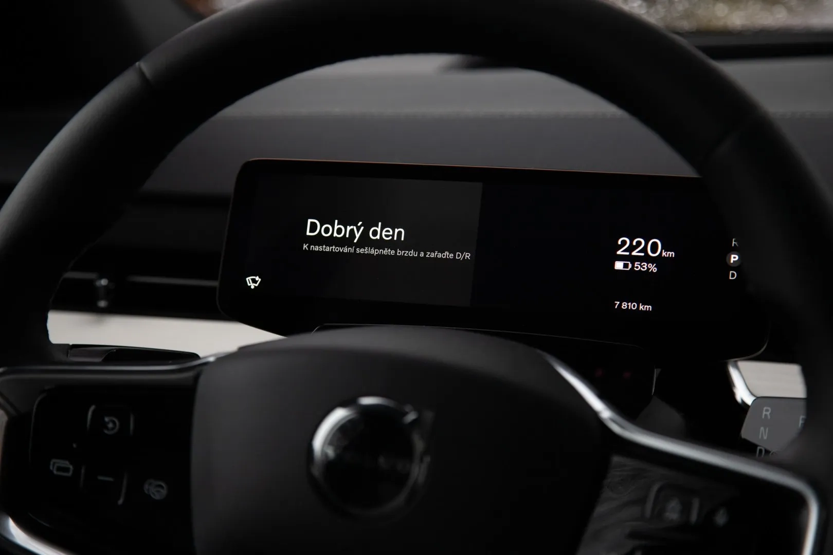 Rozjezd auta je jednoduchý v tom, že se nikde „nestartuje“. Stačí si prostě sednout, zapnout si pás, sešlápnout brzdu a zvolit na páčce po levé straně písmeno D nebo R. Podobné je to při parkování. Člověk si tak musí zvyknout, že nikde nic nemačká, aby se vůz uvedl do režimu „ready“.
