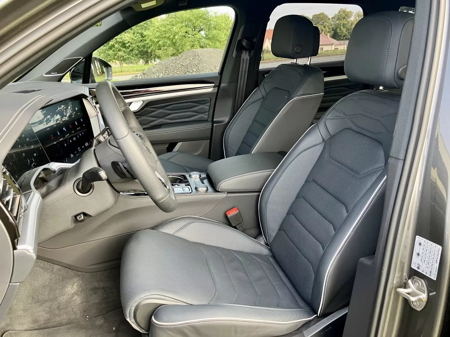 Materiály jsou na úrovni prémiového segmentu: měkká kůže Nappa na sedadlech a dveřích, perforované povrchy pro lepší větrání, a dřevěné nebo karbonové obložení v R-Line. Sedadla jsou elektricky nastavitelná v 18 směrech, s masážní funkcí a pamětí – tak pohodlně a voňavé posezení jsme si už dlouho neužívali a měli jsme pocit, že dojet by se v pohodlí dalo až na konec světa. Zadní řada nabízí plných 1007 mm volného prostoru pro nohy, nastavitelná sedadla s elektrickým sklápěním a samozřejmě vyhřívání. Kufr má základní objem 810 litrů (rozšiřitelný na 1 800 l), což je více než u Audi Q7, a zvládne snadno rodinný výlet s karavanem, koňmi nebo lodí (tažná kapacita 3 500 kg brzděných). Celkově je interiér Touaregu 2025 místem, kde se cítíte jako v salonu – pohodlném, technologicky vyspělém a rodinně přátelském.